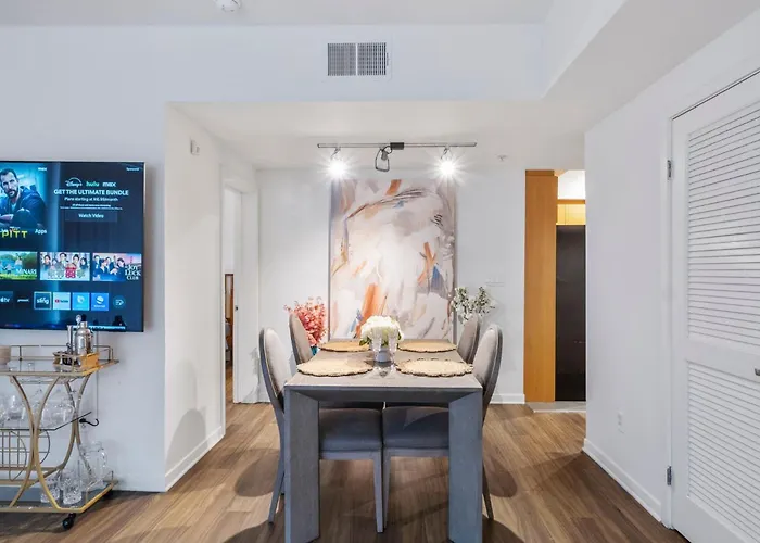 Corsair Stadium is situated approximately a 10-minute drive away. This 84 m² apartment lies merely 6 minutes' walk from Santa Monica Chamber of Commerce and only a few metres from Downtown Santa Monica.